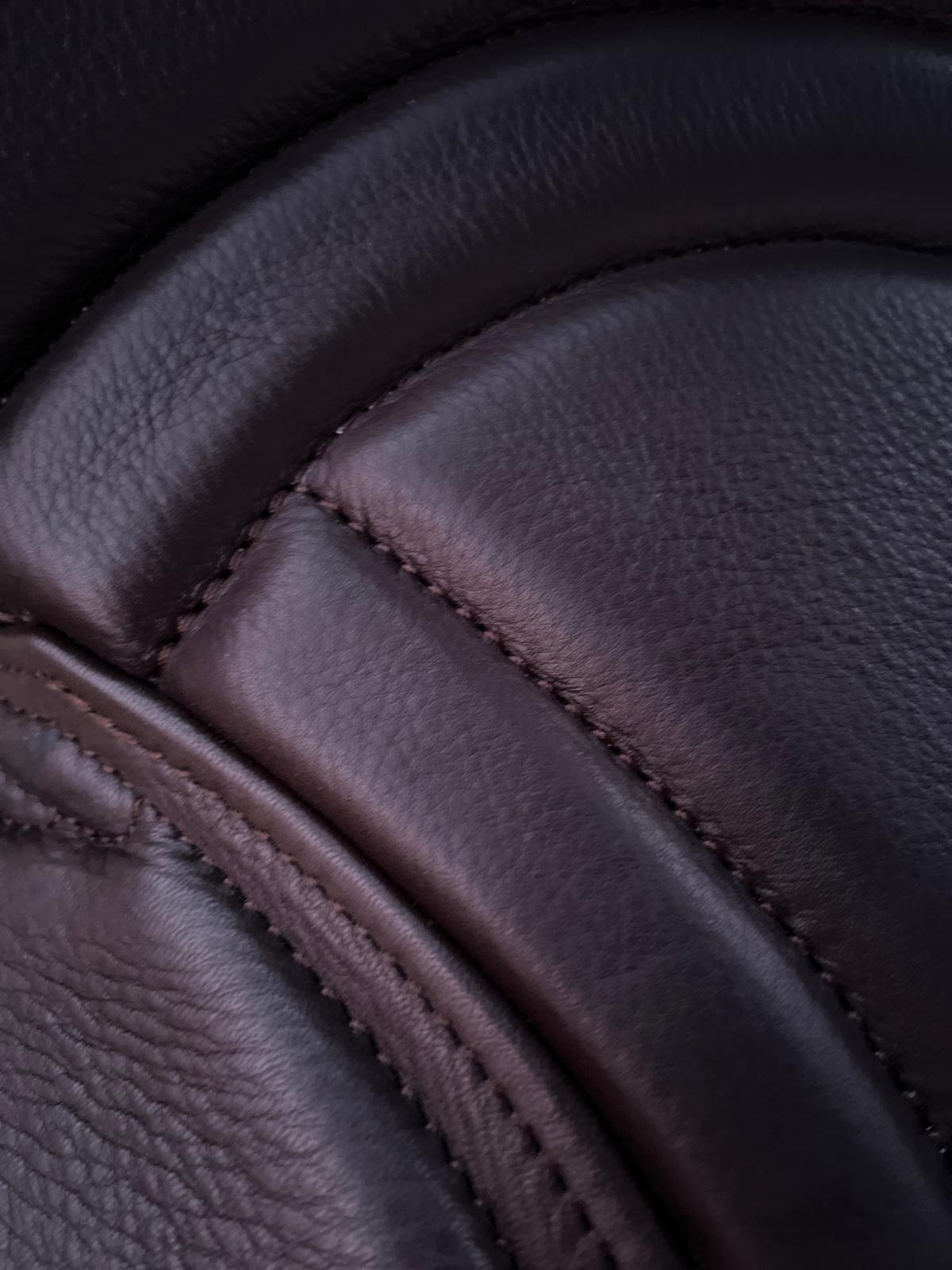 Kuvassa oikealla alempi, musta sweat flap on NG:n uudesta nahasta. Se on näin paljon paksumpaa ja kestävämpää kuin aiempi nahka.