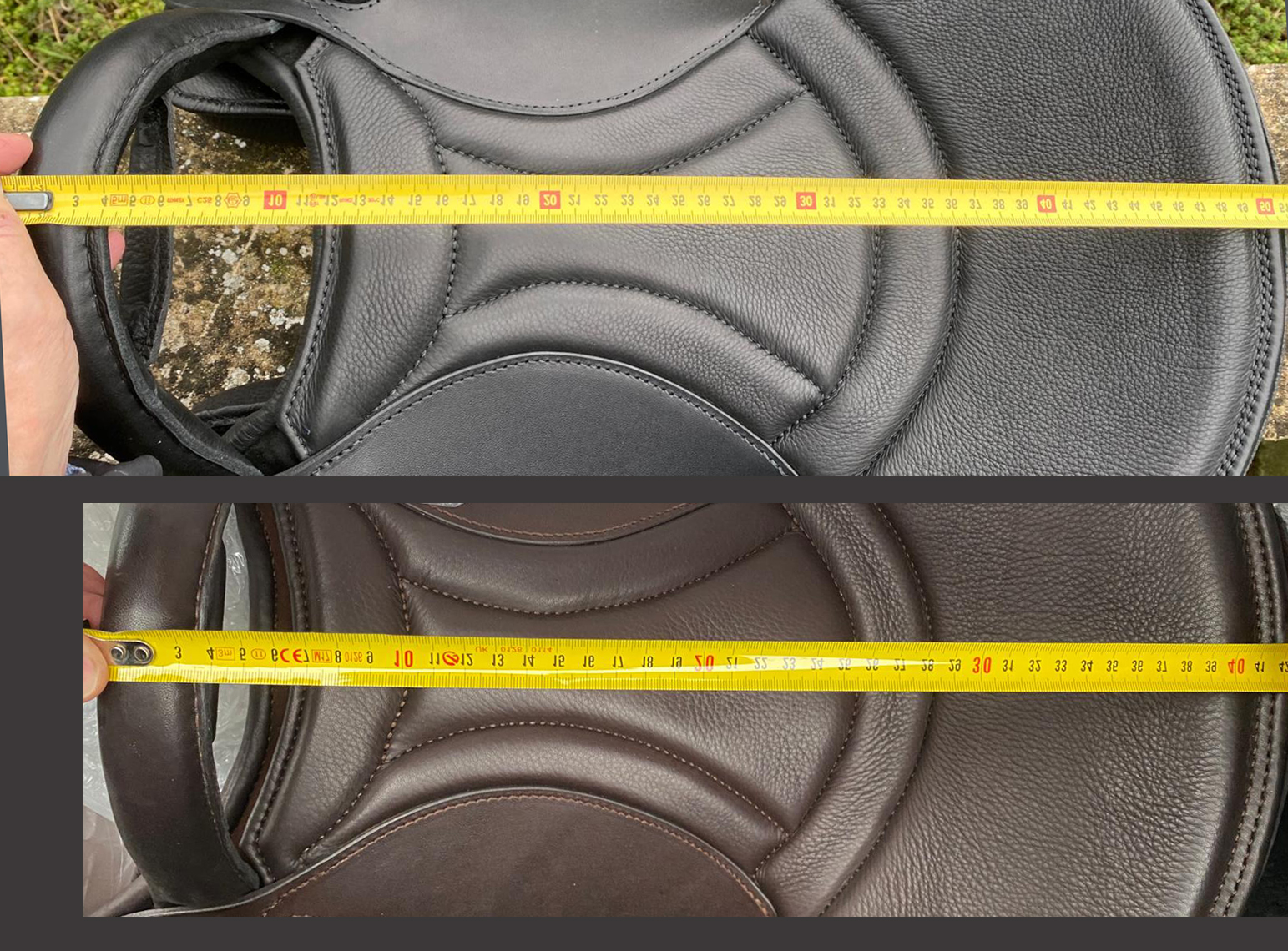 Mustassa satulassa on NG-mallien etukaari. Ruskeassa on aiempien mallien etukaari. NG-istuin on noin 9 cm tilavampi.